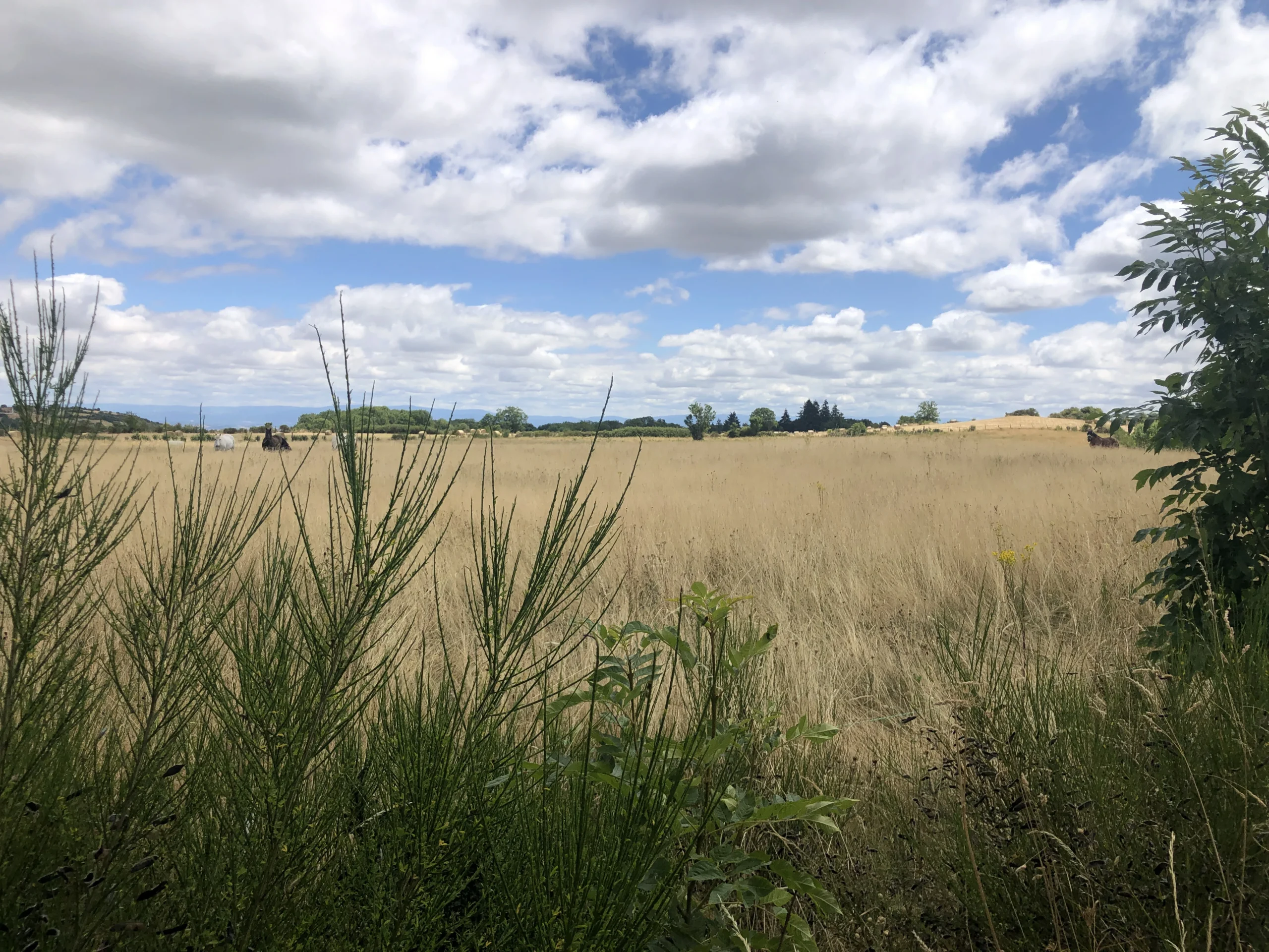 On traverse des parcelles agricoles, les champs sont bien cultivés, quelques fermes éparpillées. Le calme est reposant, avec parfois le chant lointain d’un coq ou le bruit d’un tracteur au loin. Les haies bordent les chemins, offrant des zones d’ombre bienvenue.